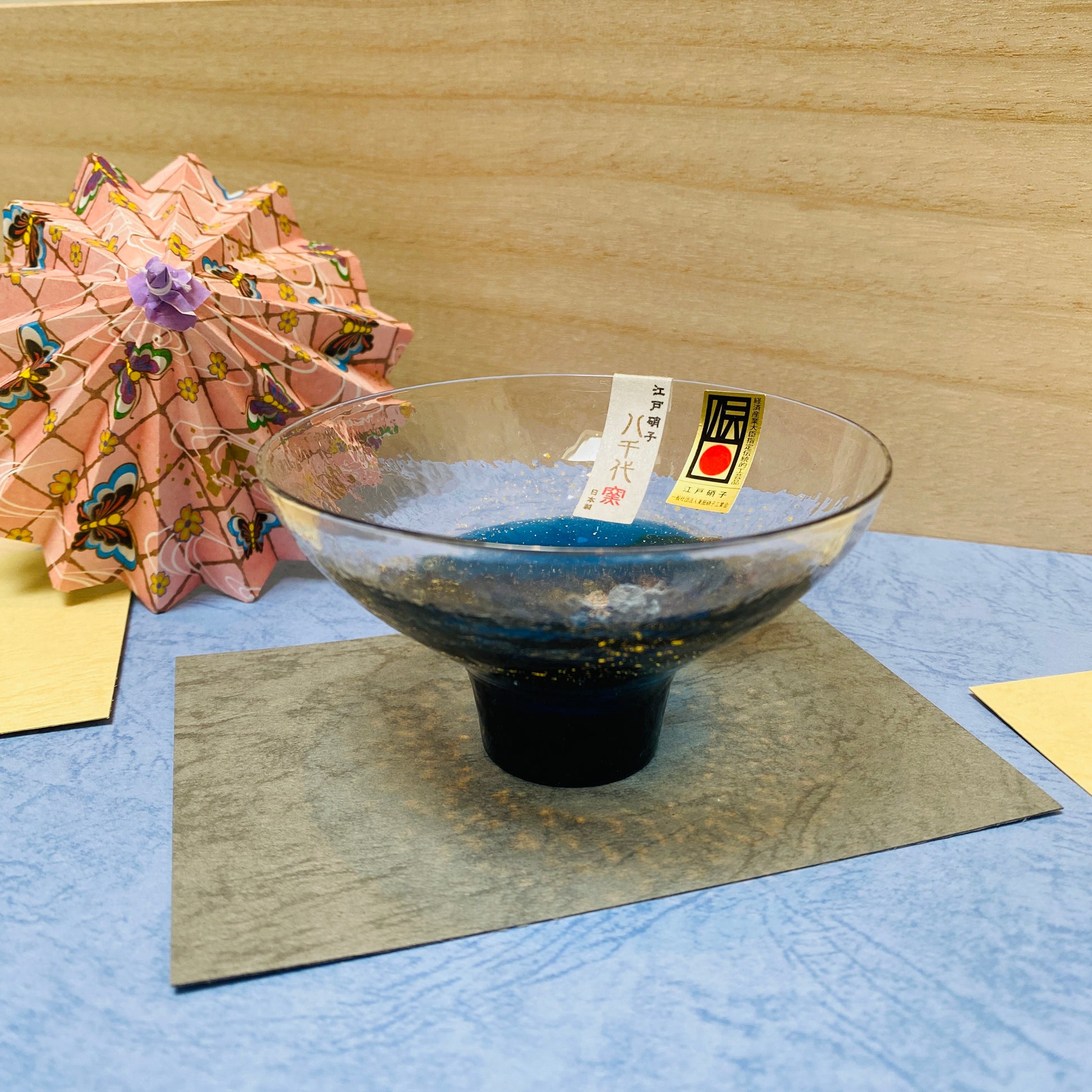 佐々木ガラス 江戸硝子 八千代釜 盃 青